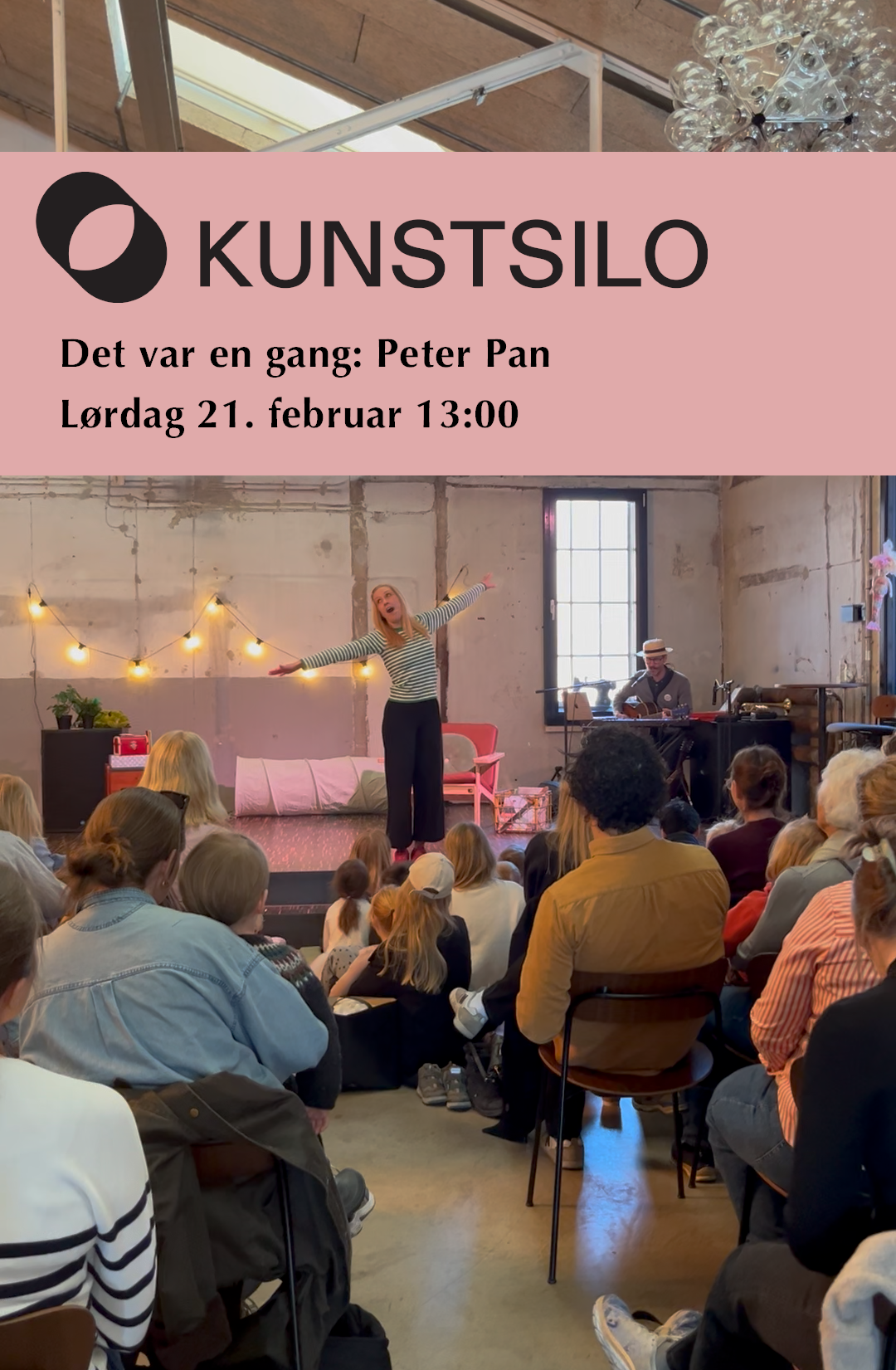 Og ikke hvor som helst, men selveste Kunstsiloen. Der inviterer vi til interaktiv fortellerstund basert på ‘Peter Pan’ av J.M. Barrie, en magisk og tidløs klassiker om frihet, fantasi og valget mellom evig barndom og det å finne sin plass i verden. Arrangementet passer for barn fra 4 år og oppover, men hele familien er hjertelig velkommen.